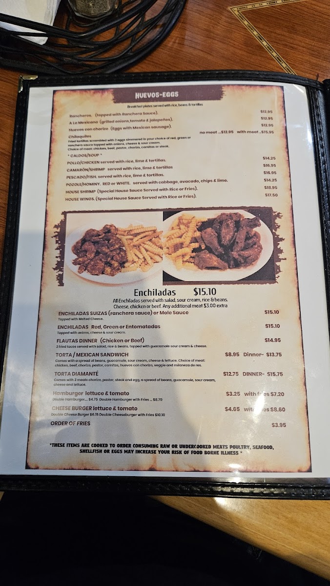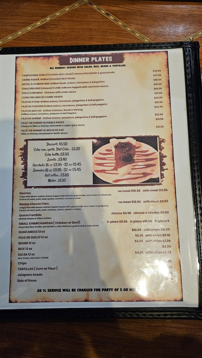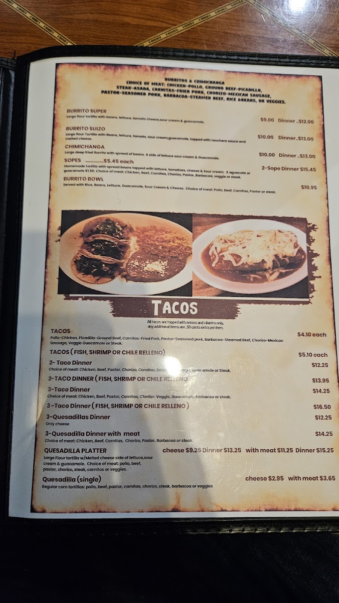 Overall, the menu mirrors the friendly and unpretentious vibe of the restaurant, inviting guests to enjoy simple, robust Mexican cuisine paired with warm service and a relaxed setting.