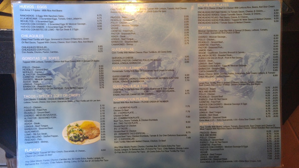 Taqueria Diamante offers a menu rooted in authentic Mexican flavors, featuring straightforward, comforting dishes that feel at home any time of day. Whether you're settling in for a casual lunch or enjoying a relaxed dinner, the selection ranges from classic tacos and hearty burritos to flavorful seafood plates and traditional sides.